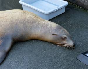 This patient is a California sea lion, our most commonly rescued species, with animals of all ages stranding throughout the year with a variety of ailments.