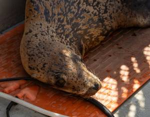 This patient is a California sea lion, our most commonly rescued species, with animals of all ages stranding throughout the year with a variety of ailments.