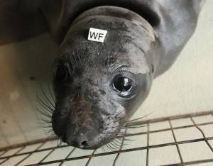 This patient is a northern elephant seal, our second most commonly rescued species. We typically see orphaned pups that have stranded during mid-February to late June. Strong storms often wash these young seals off beaches before they have weaned from their mothers or learned how to survive on their own.