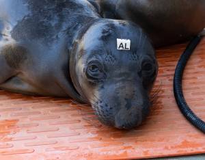 This patient is a northern elephant seal, our second most commonly rescued species. We typically see orphaned pups that have stranded during mid-February to late June. Strong storms often wash these young seals off beaches before they have weaned from their mothers or learned how to survive on their own.