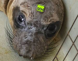 This patient is a northern elephant seal, our second most commonly rescued species. We typically see orphaned pups that have stranded during mid-February to late June. Strong storms often wash these young seals off beaches before they have weaned from their mothers or learned how to survive on their own.