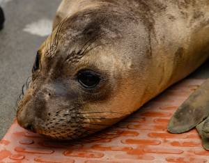 This patient is a northern elephant seal, our second most commonly rescued species. We typically see orphaned pups that have stranded during mid-February to late June. Strong storms often wash these young seals off beaches before they have weaned from their mothers or learned how to survive on their own.