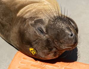 This patient is a northern elephant seal, our second most commonly rescued species. We typically see orphaned pups that have stranded during mid-February to late June. Strong storms often wash these young seals off beaches before they have weaned from their mothers or learned how to survive on their own.