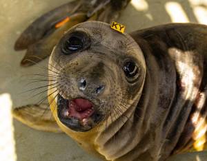 This patient is a northern elephant seal, our second most commonly rescued species. We typically see orphaned pups that have stranded during mid-February to late June. Strong storms often wash these young seals off beaches before they have weaned from their mothers or learned how to survive on their own.