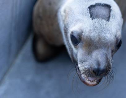 Steller sea lion Smores was found alone on a beach at just a few months old. At the Center, Smores was housed with many different patients. Spending time with companions of different species and ages helps Steller sea lion pups avoid habituating to humans while learning important behavior skills.