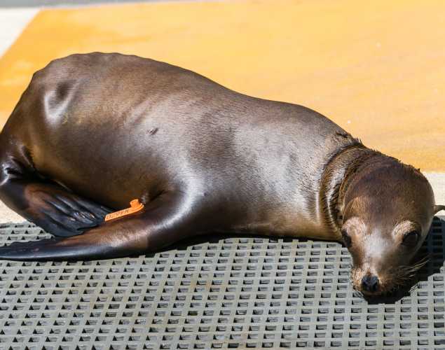 Since 2009, the Center's biologists and veterinary staff have taken blood and urine samples from wild juvenile California sea lions at popular haul-out spots in the San Francisco and Monterey Bay areas. These animals are then tagged and released, and the urine and blood samples help researchers learn more about kidney function and exposure rates among these animals.